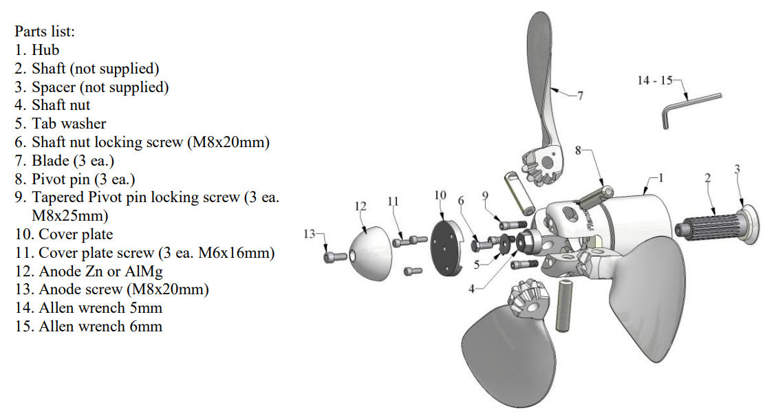 Fits Flexfold 2-Blade and 3-Blade Saildrive Props that use the M16 x 2.0 Nut (e.g. SD 20, 25 & 31). Double check your size before ordering.