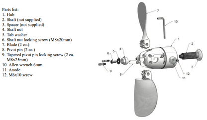 These aluminum anodes mount on the side of the hub. Clean mounting surfaces well, and torque mounting bolts no more than 7 ft lbs when installing.