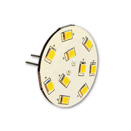 This bulb features a proprietary Constant Current driver and high-output thermally-efficient multi-emitter SMD LED bonded to an Alumicore substrate. These features combine to give record setting output, superior efficacy (lumens/watt), and the longest service life in a replacement G4 form factor. Great for bell shaped reading lamps and Cantalupi overhead recessed lights. Fits most boat and RV G4 halogen fixtures. Its 10 LED design spreads the LED emitters over a wide area, giving the bulb a pleasant tone, with a less dazzling appearance than some LED bulbs.