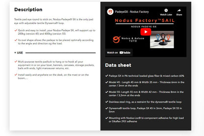 - Quick and easy to install, your Nodus-Padeye SX, will support up to 400kg (version 55)